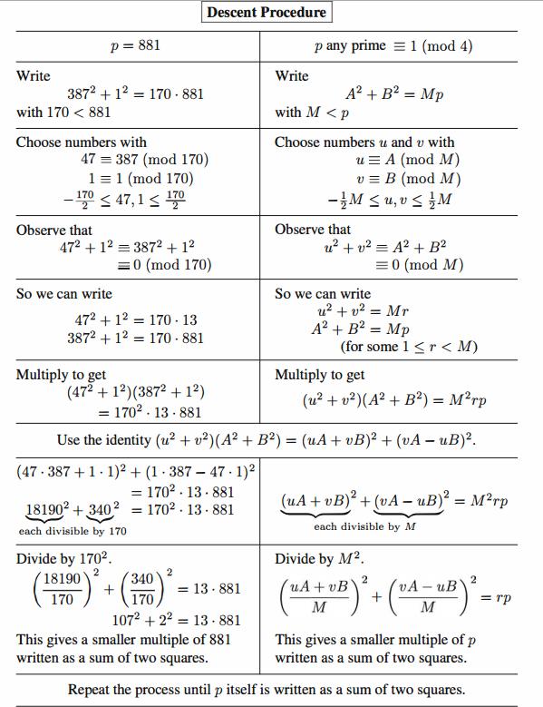 A classical math problem. Maybe called Sum of Gauss squares. I always use it during the math competition to prove some proposition. But I haven’t thought how to find it. I just search some algorithm named Fermat reduced order method and achieve it.